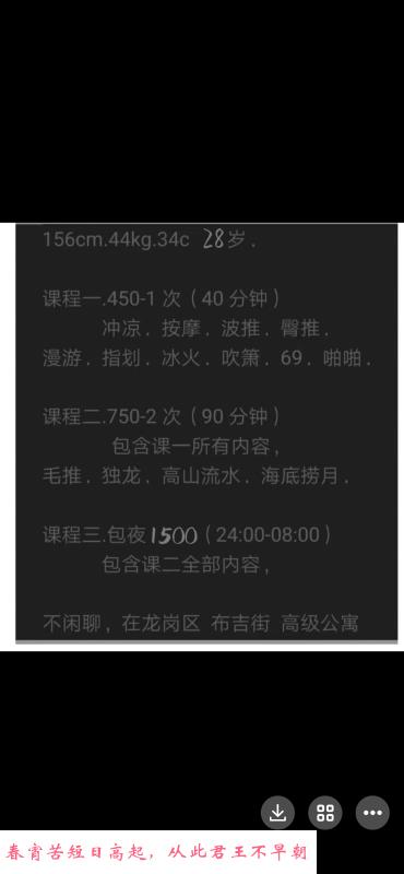 态度没问题比较豪爽,服务颜值身材还可以。课室在龙岗算好的了,就是楼下不方便停车,最好打车过去。自己看吧!我不差分。
